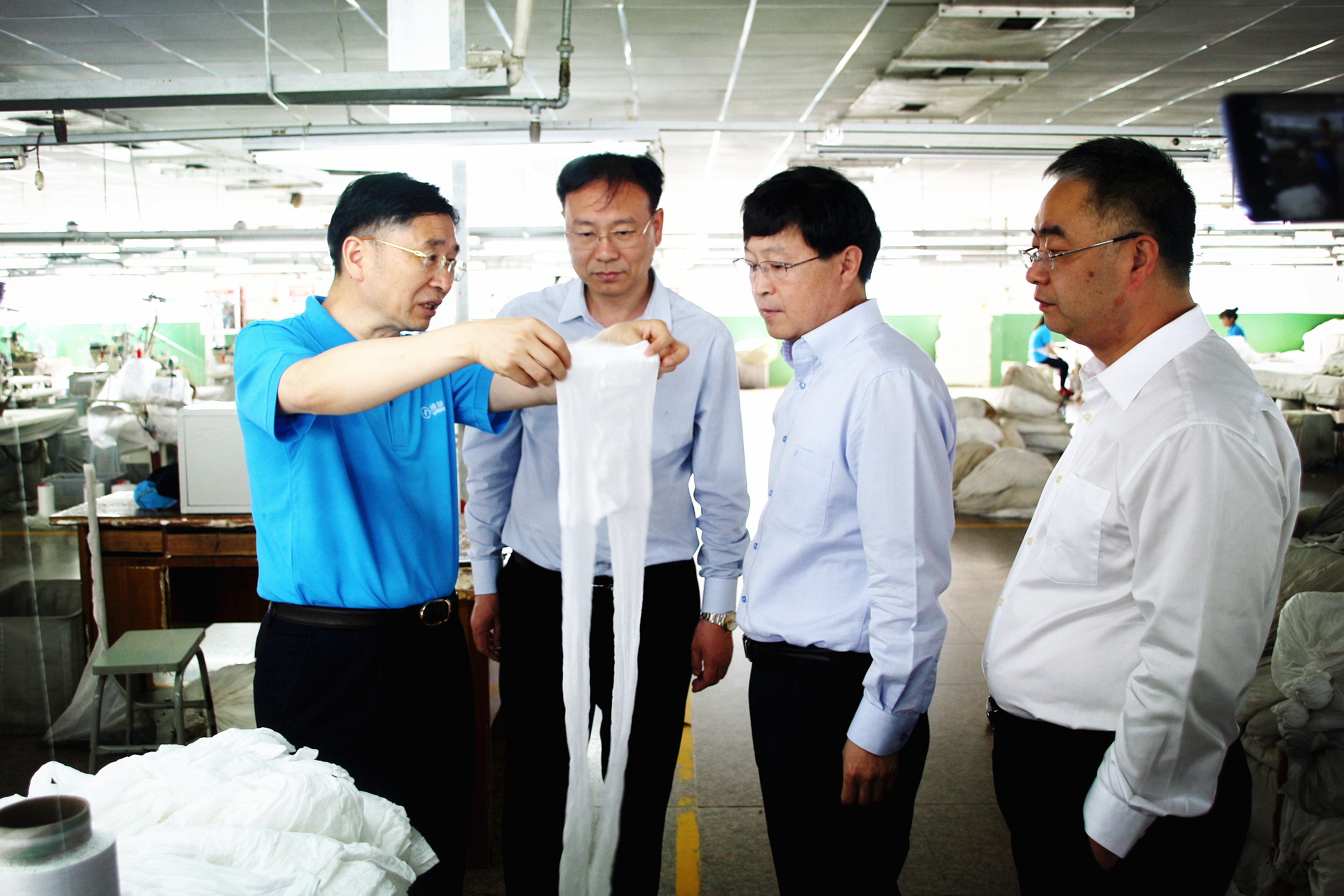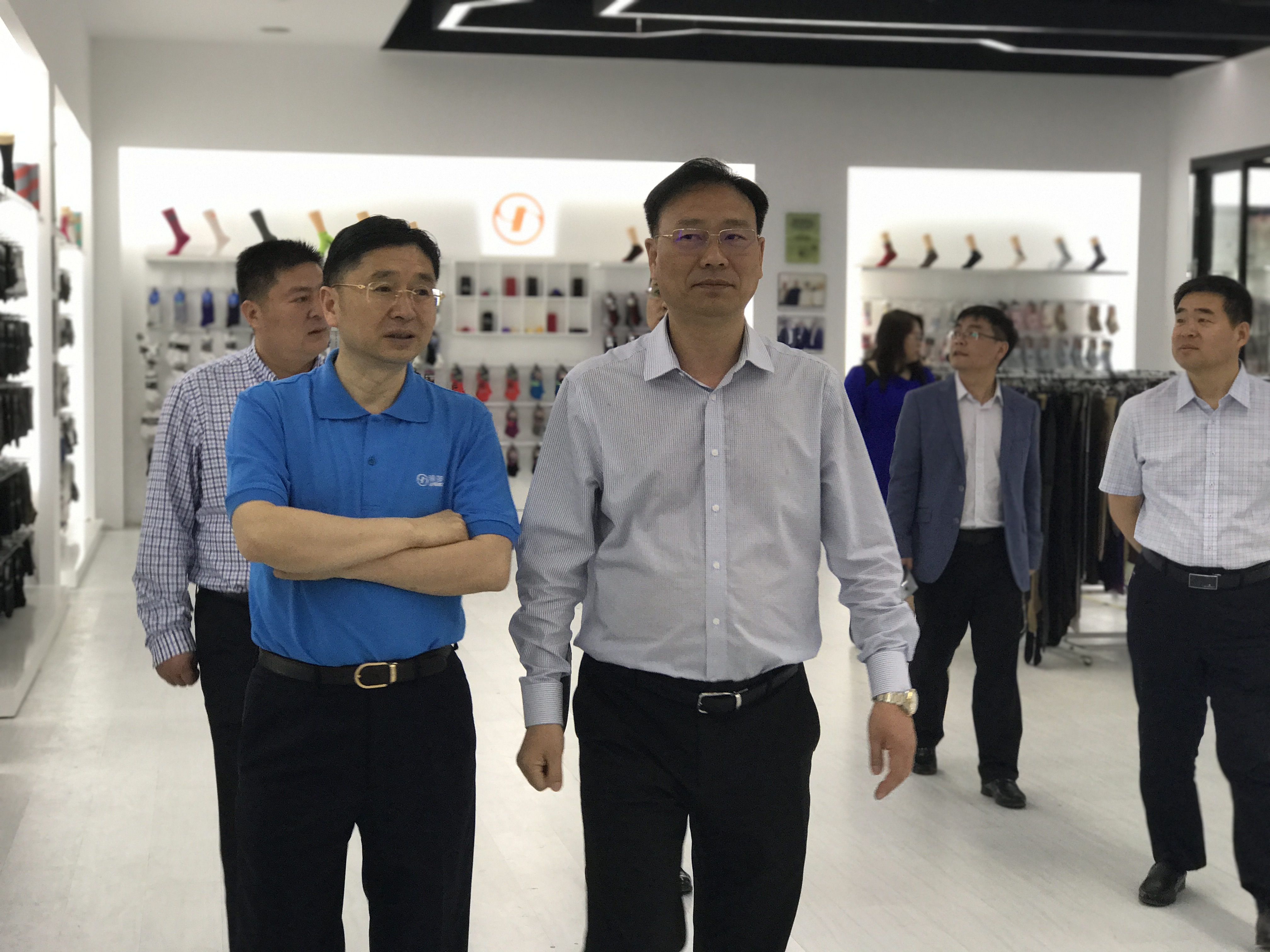 今日上午,吉林和龍市委書記金烈一行到浪莎考察指導。浪莎集團董事長陪同參觀了企業展示廳及車間。