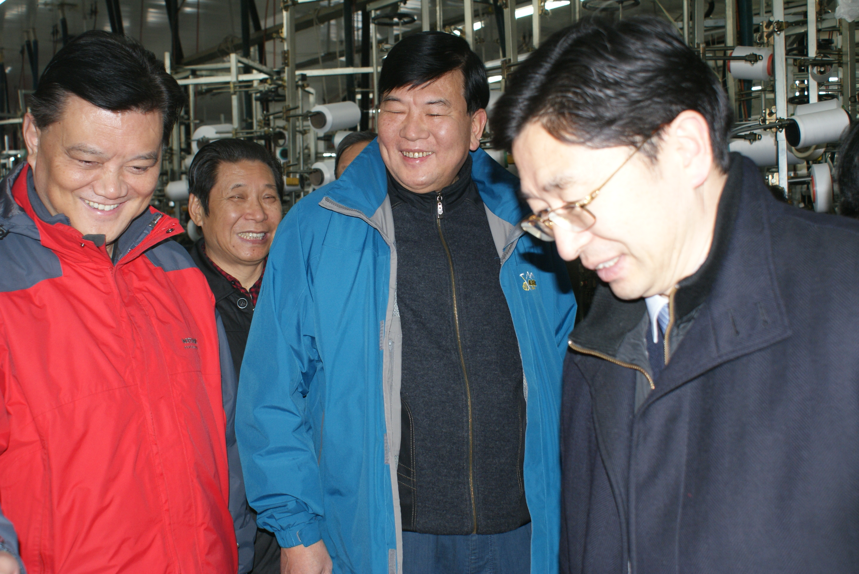 在織造車間,解主席近距離觀察絲襪半成品織造過程,詳細了解襪子的生產流程。他對浪莎集團最早引進進口全自動織襪機,帶動中國襪業繁榮所作出的努力給予充分地肯定;對浪莎集團創始人秉承“振興民族襪業”的精神,“爭創世界名牌”的實踐表示贊揚。